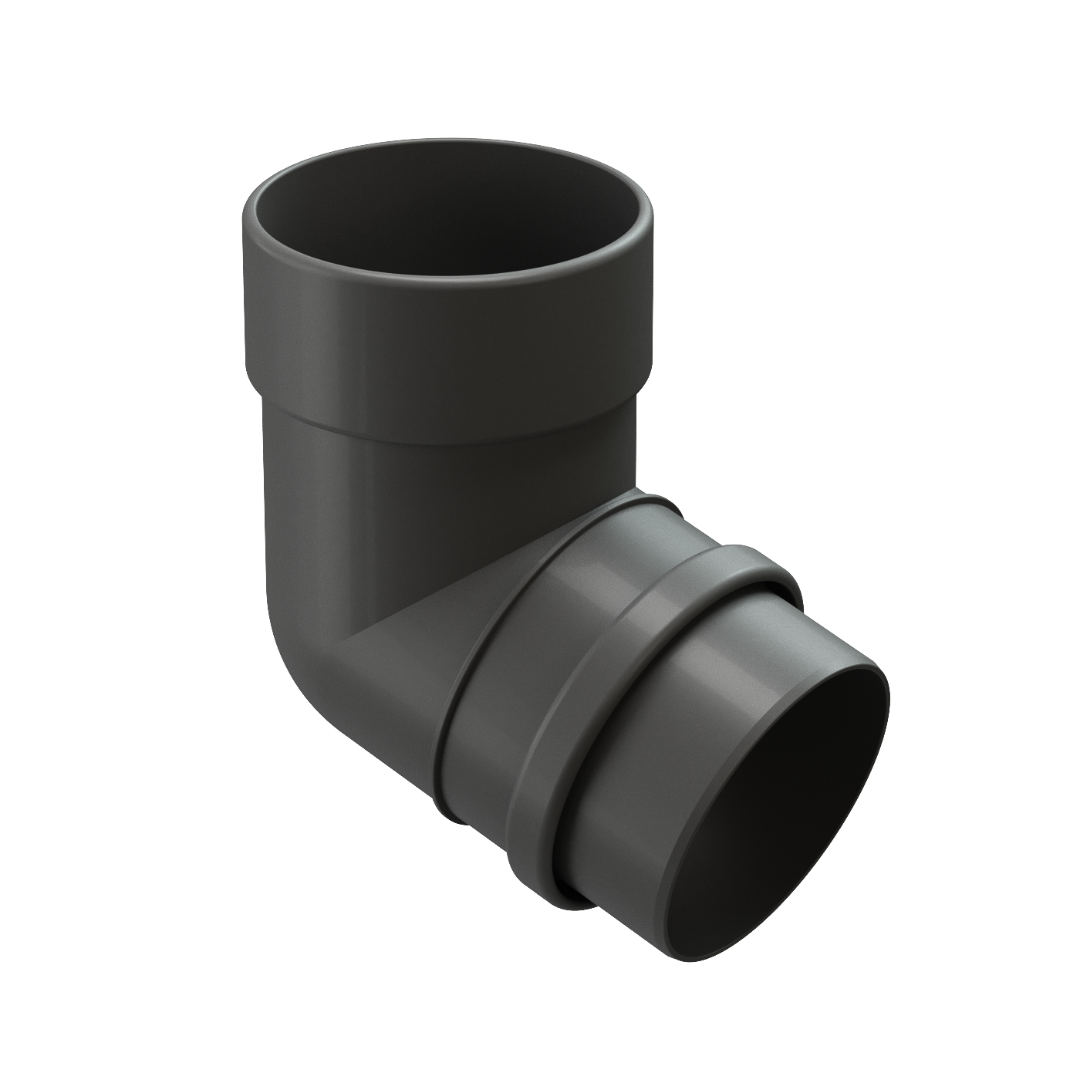 Воронка желоба через систему 2-ух колен соединяется с трубой водостока. В ассортименте представлены колена водосточной трубы в 45 градусов и 72 градуса.