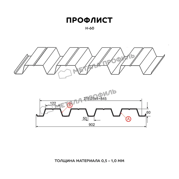 Профлист МЕТАЛЛ ПРОФИЛЬ Н-60x845-A (ПЭ-01-6005-0,65) широко применяется в Нижнем Новгороде для монтажа профилированного листа. Изначально он представляет собой лист оцинкованной стали с покрытием. Общая толщина стальной основы с цинковым и декоративно-защитным слоем — 0.65 мм.После проката на специальном оборудовании металл принимает волнообразный вид. Несущая способность профилированного листа на порядок выше плоского.